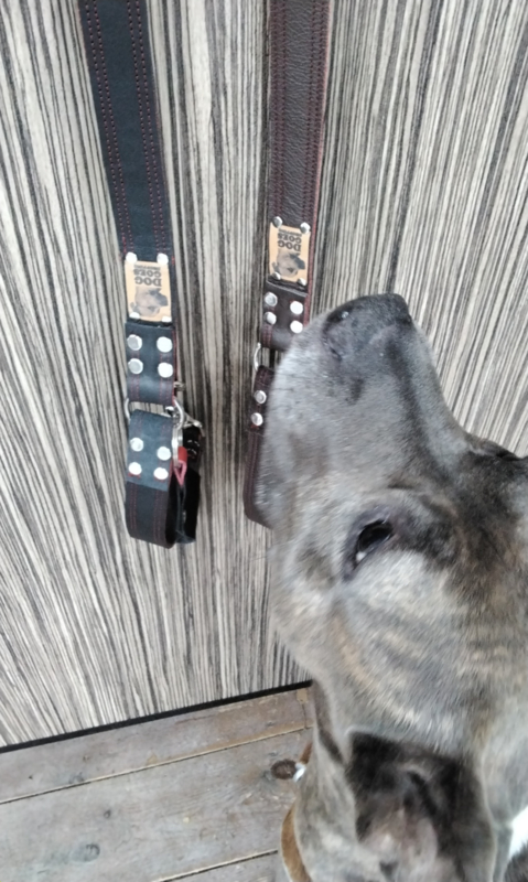 OverzichtStoere leren riemen. Extra breed, 3 cm, dus ligt goed in de hand en is extra stevig.